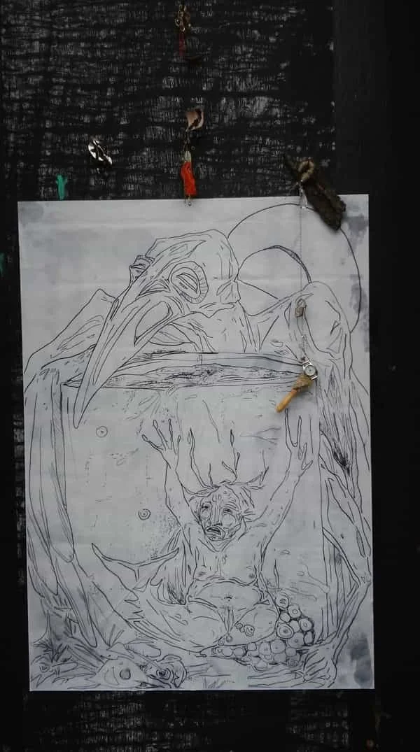 Maanii Oakes is a Swampy Cree Anishnabek and Kanienkehaka cultural tattoo practitioner and visual artist in the mediums of skin stitch, handpoke, pencil crayon and most recently rawhide sculpture. Her work is influenced by her home of Eeyou Istchee, as pressed by her late grandfather in enacting Cree ways of governance and being. She tattoos both traditional and contemporary designs pulling from her own archival research and the strong material culture of her ancestors including bulrush weaving patterns and the painted caribou blankets of James Bay. In contrast her figurative pieces address recent history and present day colonialism, not pandering to loss of what she never had but rather looking to engage the stark reality of living culture seeping through layers of assimilation. Her practice also includes a variety of public speaking engagements and mentorship in community arts centering environmental justice and indigenous stewardship demonstrating her commitment to community and cultural exchange.